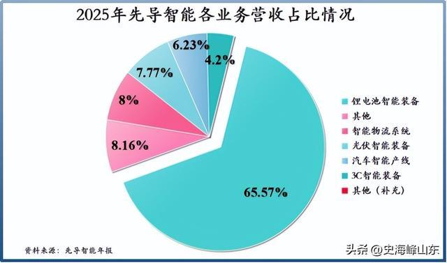 别看截至2025年,锂电池智能装备仍然是公司最核心的收入来源,营收占比高达65.57%,但非锂电池装备已经长成气候。