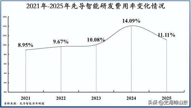 另一个降幅较大的是研发费用率,2024-2025年从14.09%降到11.11%,减少近3个百分点。